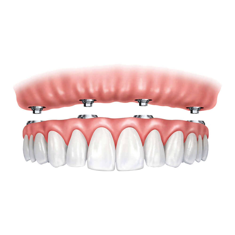 - São instalados de 4 a 6 implantes dentários no osso da arcada.